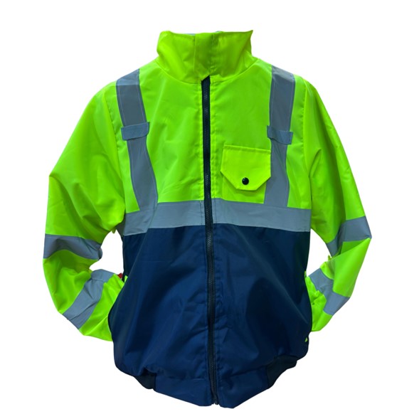 Chamarra impermeable de alta visibilidad diseñada para ofrecer máxima protección y confort en entornos laborales exigentes. Fabricada con material fluorescente que mejora la visibilidad diurna y cintas reflejantes plateadas de 5 cm que aumentan la seguridad en condiciones de poca luz. Su forro interior acolchado de poliéster brinda calidez y comodidad, mientras que la capucha enrollable en el cuello y la gorra impermeable permiten adaptarse a distintos climas. Ideal para trabajos al aire libre, obras, mantenimiento y actividades donde se requiera alta visibilidad y protección contra la lluvia.