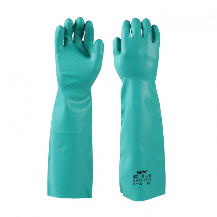 Guante AlphaTec Solvex 37-185 de nitrilo de alto rendimiento con longitud hasta el codo.